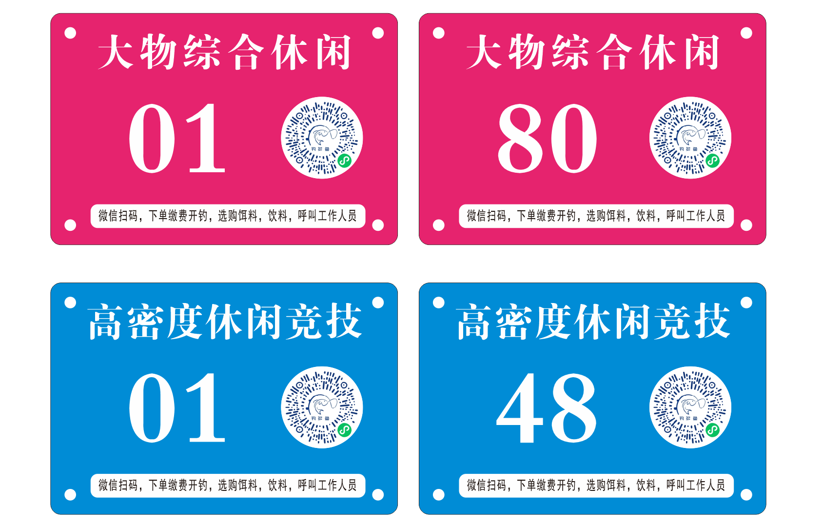 放置于座位号上,方便钓友扫码付款 15*10cm,1.0mm厚铝板 表面贴广告级反光膜,带4个直径5mm的螺丝孔 |