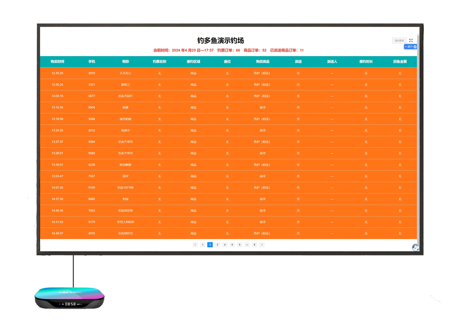 链接电视机,放置在小卖部 实时查看订单信息 |